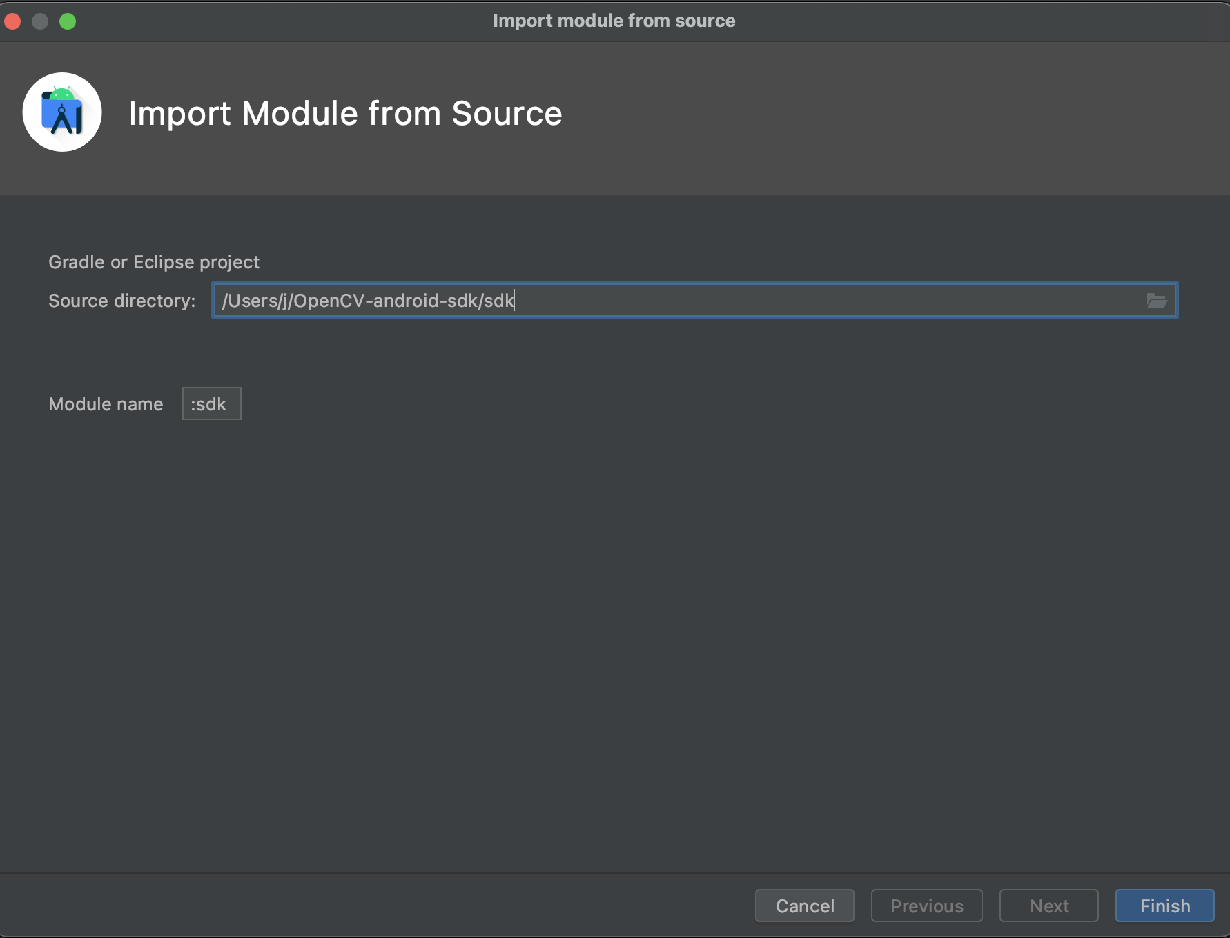 모듈 이름은 :{하고싶은 이름}으로 한다 꼭 sdk 아니여도 됨...!