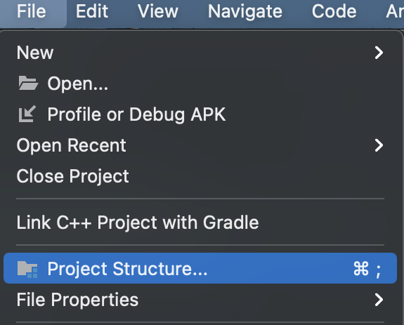 그러기 위해서 먼저 Project Structure 창을 열어준다